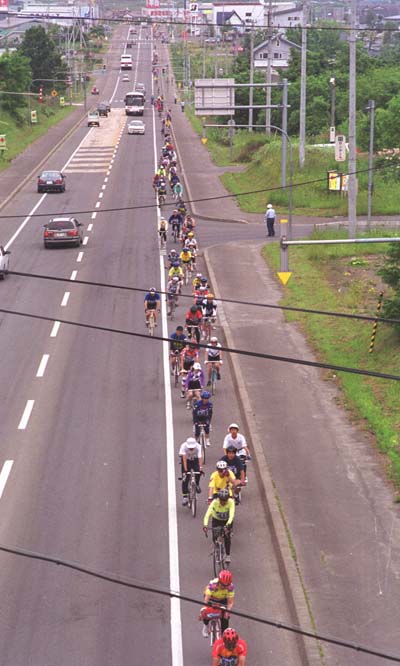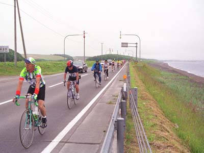 興部・豊丘付近。サイクリストの左にはオホーツク海。