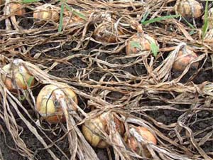 収穫を待つ、北見市郊外のたまねぎ畑。