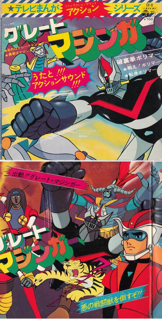こちらは水木一郎アニキが歌ってますね。なんか自己紹介のような歌ですなぁ。マジンガーZの最終回でどんどん溶けていくマジンガーZを助けてくれたのがグレートマジンガーだった。グレートマジンガーはブレストファイヤーのところを投げるグレートブーメランが嫌だったなぁ。なんかかっこ悪かった。ビューナスAはかっこ悪かったけど炎ジュンはよかったなぁ。バイク乗ってたし、くせ毛だし、弓さやかよりも賢そうだった。
