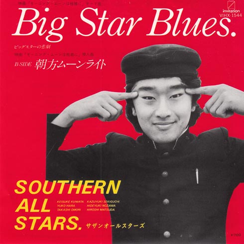 ビッグスターの悲劇って読むんですね。イントロはポール・リヴィアとレイダースというバンドのキックスっていう曲だそうです。イントロですからねいいんじゃないかと。表紙の桑田さんは沖田浩之さんのまねをしていると書いてありました。なるほどね。この曲はサザンで一番売れなくて、一番オリコンチャートが49位と低かった曲だそうです。お休みしましたからね。しょうがないですね。