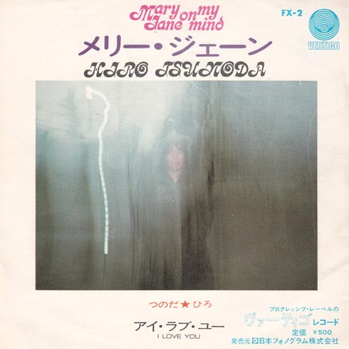 何度も出しているメリー・ジェーンですが、これはたぶん1972年のモノだと思います。右上のマークの下のVertigoは日本フォノグラムですね。右下にはプログレッシブレコードのヴァーティゴって書いてありますね。B面はアイ・ラブ・ユーで、この曲がお気に入りなんでしょうか。メリージェーンって書いてるしたの、くるくる文字はたぶん、ひろつのだって書いてあるのでしょうけど、読めない。