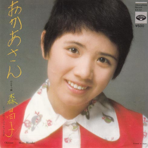 森昌子さんは1971年のスター誕生の初代チャンピオンですからね。すごいですね。74年の紅白でもこの曲を歌ったそうです。さらに1975年春の第47回選抜高等学校野球大会では、入場行進曲にもなったそうです。でもオリコンでは21位だったそうです。いい曲ですけどヒットしたわけではなかったのかな?左下には「マコの作ったジャケットです」とありますが、この赤いお洋服のことですかな。そういう一般庶民的なイメージがよかったんでしょうなぁ。