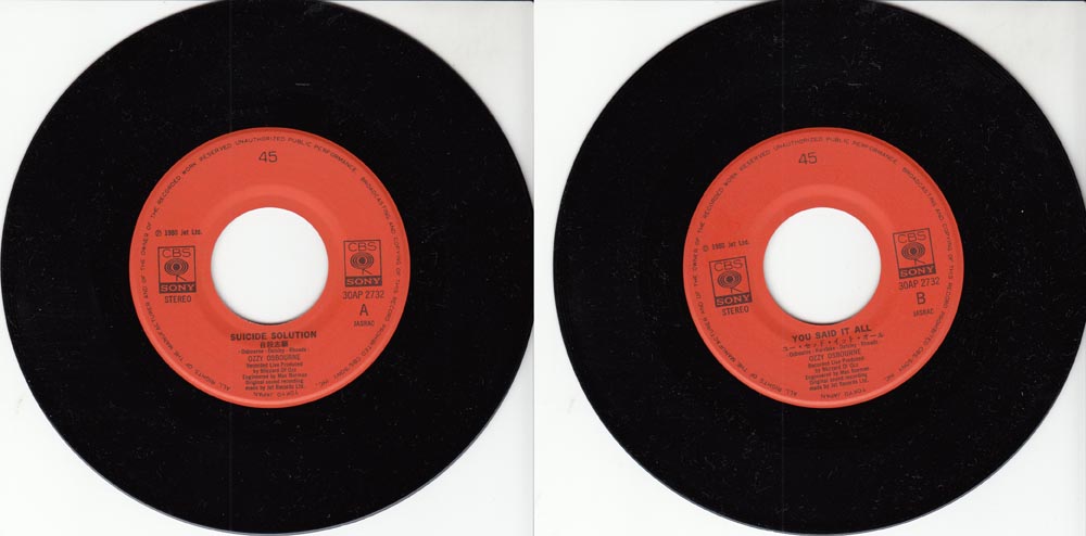 自殺志願という題名がついておりますが、なんとこれはアルバム、月にほえる(別名バカだもん)のおまけシングルとしてついていたもの。だからジャケットがなかった。B面のユーセッドイトオールはCDになってないと思う。ライブミスタークローリーという3曲しか入っていない12インチシングルのB面に入っていたもの。ギターはランディローズ。すばらしい。まぁ今ならどっかのネットに落ちているからぜひ聞いてほしい。