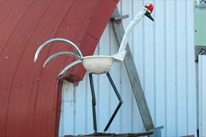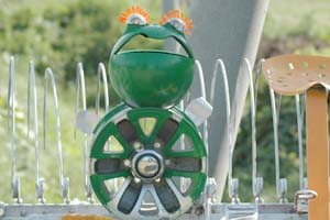 栃木のSさん宅にて発見、廃品で作ったオブジェです。実はこの材料、牛が水を飲む時に使うウーターカップなどを部品として利用しています。おもしろいですね。(撮影 sony)