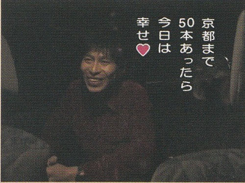 「みんな笑ってるけど、ホントは行きたくないんだよね。どこでもいいから、ゆっくりしたいよね。だってぇ、だって今までみんな、金沢からここまで無口だったんだよ。僕なんか途中からあれだもん。その列車から見える果物のぉ、柿の木が何本あるか数えてたもん。京都まで50本あったら今日は幸せって心の中で呟きながら」とミスターの独白。洋さんが何本あったのと聞くと、「74本」と答えるミスター。あなた自体、とっても幸せな男だよと洋さんは言ってましたなぁ。