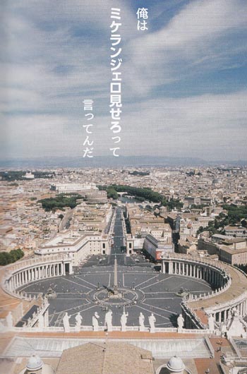 | ヨーロッパ20ヵ国 完全制覇 この前テレビでも放送していましたヨーロッパ第3弾。パリからではなくこの企画だけイタリアからでした。なんかやる気がないような感じが全体的に見られますけど。まぁ今見たら楽しいところもあります。この写真はサンピエトロ広場です。やみくもに並ぶところです。ほかのサイトの旅行記を読んだからあんなに並んでなかった。きっとなんかあるんだよね。洋さんはミケランジェロを見せろって言っているけど、この大聖堂にも有名なミケランジェロのピエタがあるんだから文句を言うことはない。まぁ隣の美術館に行くとシスティーナ礼拝堂天井画が見れますけどね。 |