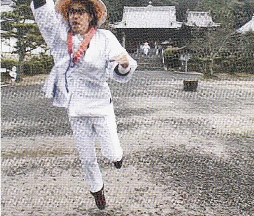 この前にうれしーが「おっきい声で言え」と言ってから「はい回路、はい、はんだごてではい!はいはんだじー」って言っているところですね。これはたぶんテイク2か3で、もっと手前でやったんだそうな。そしたらちょっと聞こえないので、もう少し中でやって大きな声で言わせたんです。なぜなら後ろからやってくる人に聞こえるようにです。この画像でも本堂から走ってくる白い人が見えますね。