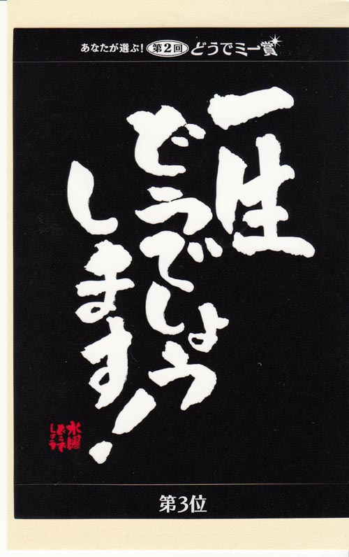 | 僕は一生どうでしょうします 「プロデューサー、これおかしいと思うよ。これちょっと言った方がいいと思うよ。タレント寝かせないって言ってんだから。話すことねぇって言ってんのに、腹を割って話そうっていうんだよ」すると土井Pが「俺もいるんだからさ、不満全部言おうよ」と油を注ぐ。すると洋さんは「ないないない。不満なんかない。僕はこの番組が大好きだし、ツアー客も大好きだし、朝4時に起きる事に何の不満もない。問題なんもないです。問題なし。問題なし。スッキリした!オールクリアです。ノープロブレム。」というと藤やんが素晴らしいキラーパスを出す「怒ってない?」洋さんは「怒ってるわけないじゃないですか。全然大丈夫。僕は一生どうでしょうします」 これが第3位ってことはないよねぇ。 |
