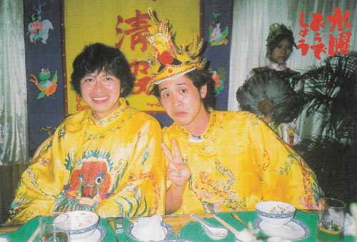 ミスターはお姫様、洋さんは王様、藤やんたちは役人でしたな。この写真ではかなり酔っていらっしゃるご様子。顔が赤いもんね。恋人よ、を披露したあとかなぁ?