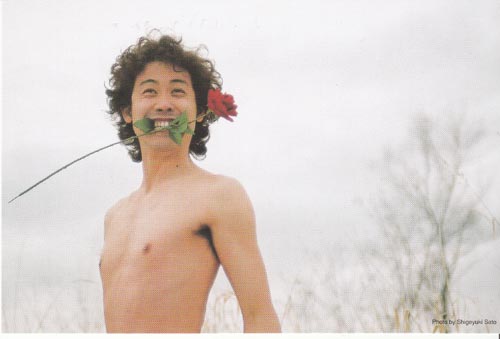 薔薇を咥えてますね。だれのディレクションでしょう?造花ですよねぇ。生花だったら、虫がたっぷりついているか、殺虫剤がついているからねェ。