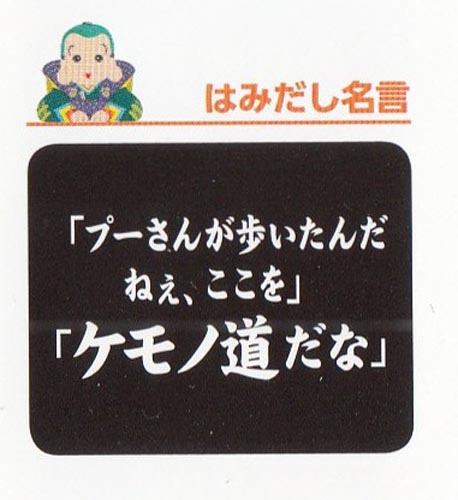 ハートフィールドというイギリスの田舎町にきて、プーコーナーというプーさんのお店に行くミスターぷー。もう興奮しまくっているらしい。このお店でミスターぷーはプーさんの風船?を買っていた。しばらく浮いているやつ。洋さんはこのケモノ道に入るときには「おしっこがしたいんだよねぇ。その辺でいいかな」と言っていましたなぁ。