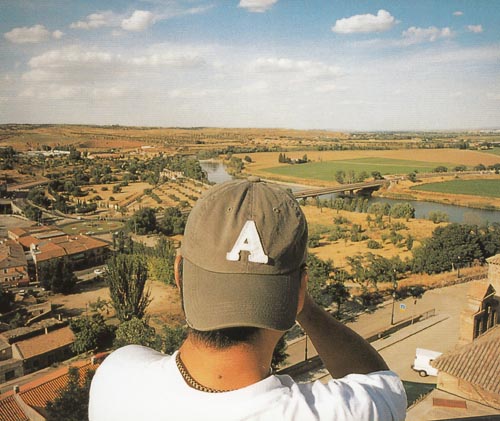 見えている川がタホ川。テージョ川とも言うそうな。トレドの街をぐるっと囲んでいるので、自然の要塞となり中世には重要な都市だったらしい。堀をつくるのはたいへんだけどね、川があるといいね。真田の上田城も確かそうだったような気がする。千曲川とか。ルクセンブルクもそうだったね。藤やんの帽子、Aって書いてあるね。エンジェルスのAかな。まさかねェ。しかしこれを選ぶ藤やんのセンスはどうでしょう?
