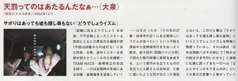 「僕と森崎くんで金剛福寺に行ってきまーす!」といった後、こうして我々は気力を振り絞り、足摺岬へと向かった。と藤やんのナレーションがあり、金剛福寺に到達するように見せかけた合成処理をして車の中。憔悴しきっていた二人は「飯を食わせろ」といい、うどんを食べることに。しかしなんと目指す」「いろり屋さん」は月曜定休だった。でもこれが四国3の見せ場なのかなぁ?
