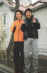 お店の前の洋さん