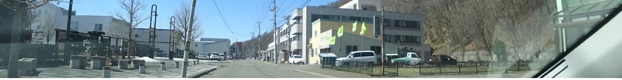 白滝の大通り。写真奥が丸瀬布方向、写真右手側に国道333号。