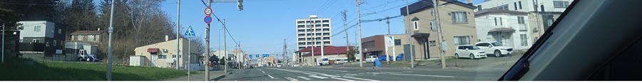 夕陽ケ丘通りを柏陽高校の交差点から北見工大方向。右前方、白い建物の向こうにスタバ。