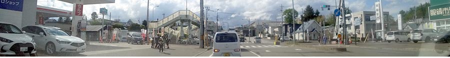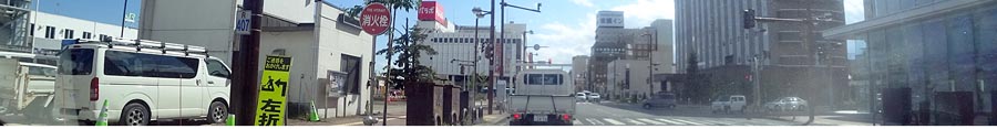 国道39号、北見駅前交差点から五差路方向。写真奥が留辺蘂・石北峠・旭川・札幌方向。