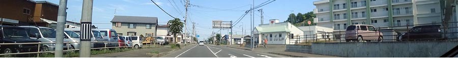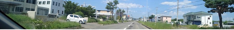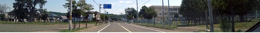 昭和通り、高栄中学校グラウンド横の下り坂。写真奥が国道39号・メッセ方向。
