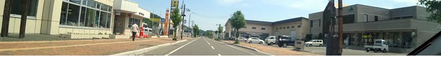 置戸町大通り、置戸郵便局前から置戸小学校方向。写真右がJA、写真奥は北見方向。