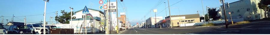 西6号線、メッセ前から京セラ北見工場方向。写真左が北見駅側。