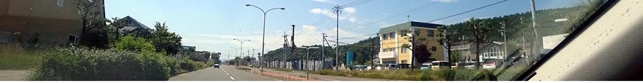 | 道々北見置戸線の置戸町豊住。左はひまわり畑、進行方向奥が置戸町境野・訓子府・北見。 |