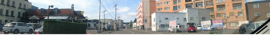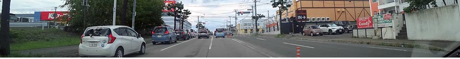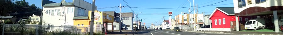 | 国道39号から東9号線、太平洋レミコン前。前方は夕陽ケ丘通り交差点、写真左が北見工大方向。 |