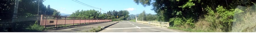 | 道々50号北見置戸線、置戸町境野の愛の川橋から置戸市街方向。この橋を渡りすぐ左折すると旧道の境野小学校前。 |
