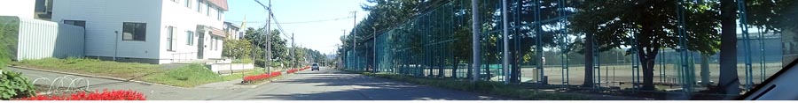 | 東4丁目通りを北見福祉会館側から学園通り方向。右は北斗高校の野球グラウンド、進行方向奥が国道39号方向。 |