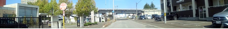 | 南仲町、西4丁目通りの跨線橋下を通る道路。写真左があしの医院、写真右は小町泉通り側。 |