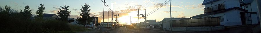 | 夕方の北光通り。写真左が北光中学校、前方は西5号線との交差点。 |