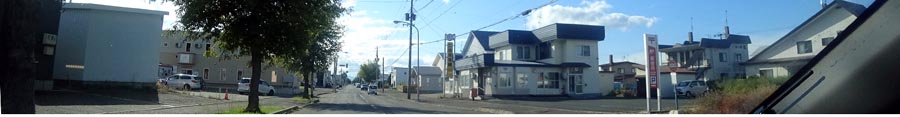 | 常磐通り、美園簡易郵便局前。進行方向奥は北光小学校。写真右が南岸通り・無加川・北見市民会館側。 |