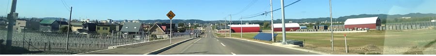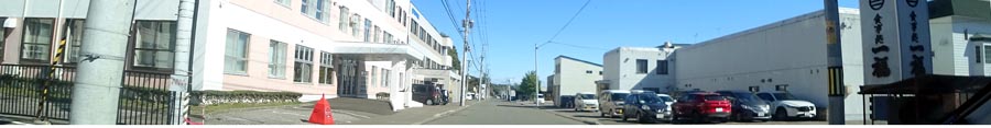 | 野付牛自動車学校前の南岸通りから教習コース側。正面奥は無加川の堤防、写真右奥が北見駅方向。 |