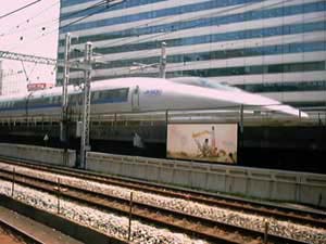 | 羽田空港から新幹線に乗って都心へ・・・って冗談ですよ。山手線の車窓からJR西日本の最新の新幹線の車両。 |