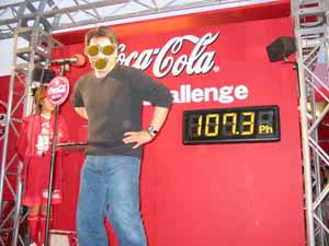 拍子抜けした気持ちを一気にワールドカップモードに高めるため、試合開始前に行われたイベントに飛び入り参加。参加賞のワールドカップグッズをゲットした熊オヤジらは小躍りしてドーム内へ。午後8時、眩いカクテル光線に照らされた芝生の上で選手達が練習開始。 この日の試合は、32000人ほどの観客で空席が目立ちましたが、ドイツ側サポーター席から突如、リズムに乗った手拍子が・・サポーターらが一斉に立ち上がると、小さな人並みがビックウェーブに代わり、場内大歓声。
