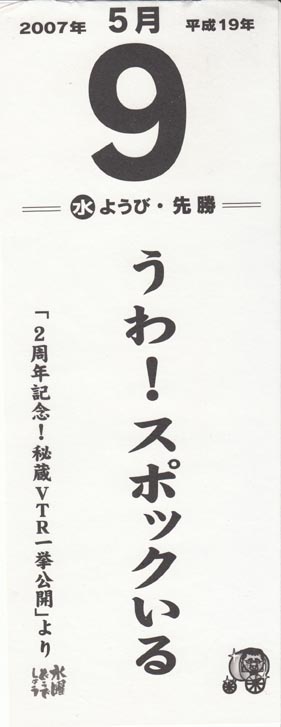 賭けているんだよ!と洋さんが言っていた2年目。3回もやってましたね。お金がなかったのかな。洋さんが福助でミスターがスポック。ミスターは「いいたくない」といっていましたね。