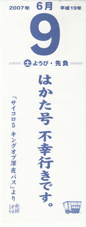 ミスターがはかた号に乗ってすぐに「はかた号福岡行きです」が「はかた号不幸行きです」に聞こえる、といってます。確かにそう聞こえなくもない。四国四国地獄、のようにね。
