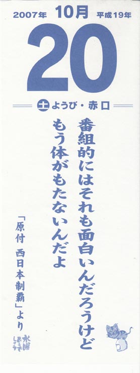 日付はあってますが曜日や六輝は2007年のものなので