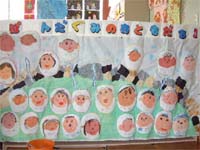 | 下にも園児達の作品がたくさん飾られていた。数々の絵画も大変良く描けていて感心した。見る目と自由に表現できる力が育っている。 |