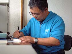 サインをする西村さん