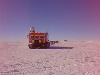 1998年1月8日、御年56歳の山田隊員をリーダーとする39次夏期旅行隊がドームへやってきた。平均年齢44、5歳のご高齢部隊だから、かごにでも乗ってやってくるかと思ったらちゃんと雪上車に乗ってやってきた。次々に3台の雪上車から降りてくるが、補給隊の時とは違って不思議となつかしさは覚えない。これが初対面だからといえばそれまでだが、なんだか平和な生活を乱す侵入者が、やってきたようでちょっとイライラした。だが橇から色々の荷物が下ろされる頃になって、一気にそんな感情は崩壊した。