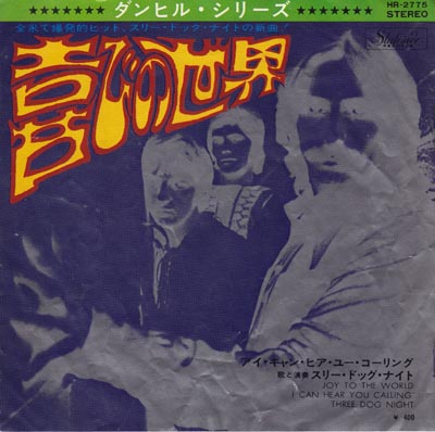 | スリードッグナイト 喜びの世界 洋題は「ジョイツーザワールド」っていうの。きっとみなさんも聞いたことあるよ。映画フォレストガンプでも使われていた。上のほうにある「ダンヒルシリーズ」っていうのは、お財布のダンヒルじゃなくてアメリカのダンヒルレコード所属の方々のレコードだって言うことらしい。んでこの曲は全米1位になったらしい。ジャケットはもう少しまとものバージョンもあるがこのシングルはなんか写真のネガ風だが、かっこいいと思ったのかな?顔がわからん。でもこれスリードックナイトのオリジナルじゃないんだよな。カバー曲。 |