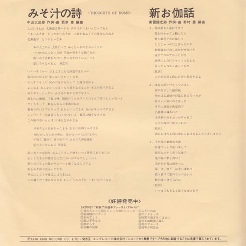 珍道中っていう、ミスターがヨーロッパで言った言葉がユニット名。南雲 修治さんというコミックソングを歌う人らしい。ほかには「女風呂の唄」というのもあるらしい。この曲はこの後、千昌夫さんがめざしのコンチェルトのB面にこの歌を入れたら、B面のほうが人気が出て、2年後にA面B面交換したシングルも出ているそうです。