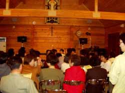 | 2003/10/13(月) 日本キリスト教会 佐呂間伝道所 日産とセイコーマートの間を北に入って少し行くと、右手少し奥まったところに木造のかわいい教会があります。暖かみのある木造の教会の庭には、色鮮やかな花がたくさん咲いている花壇や青々とした芝生があり入り口にはスロープがついていて、人がいなくても、なにか優しげな雰囲気を持っている教会です。私たちが、ライブを企画する事になり会場を探していたとき、ふとこの教会を目にしました。 「ここ、ライブに使えないだろうか…」 そう思い、ゴスペルの練習日に見学と称して教会の中を見せてもらいに行きました。入り口に入ると、また入り口があり、その入り口を開けると、まっすぐに見えるのはステンドガラス。そして、教壇。右手にはオルガンがあり、手前には3〜4人座れる長い木の椅子が真ん中の通路を挟んで左右に5つ並べられていました。天井も思ったより高く、ゴスペルを練習している皆さんの声がとってもよく響きます。木の香りがまだほのかに漂い、ほんわりと優しい雰囲気。 「ここ、利用させて欲しいな…」と、ここでのライブのイメージをすっかり湧かせてしまった私は教会の関係者の方へ問い合わせてみました。そうすると「地域の人々へ、教会を利用してもらう事や、見に来てもらえる事は教会としても嬉しいのでどんどん使って欲しい」と快く利用の許可を頂きました。 今回も、この教会を利用させていただける事になって、とても感謝しています。きっと「一度、教会の中に入ってみたかった」と思っているお客さんも、いるはず。この機会に、教会の中に入って、リクオライブを見てみませんか? |