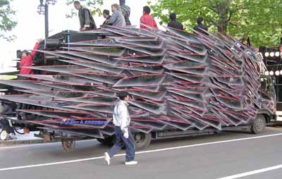 | 某地方新聞社の案内所。YOSAKOIで発行した号外を配っていました。 |