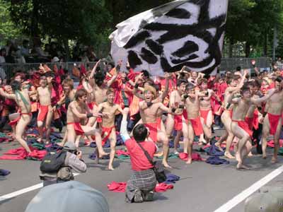 | 北大と言えば、「赤フン」。北大の学生チームの踊りです。 |