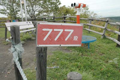 | 近くにはズリ山があり、頂上までの階段が整備されています。 その数なんと777段。 |
