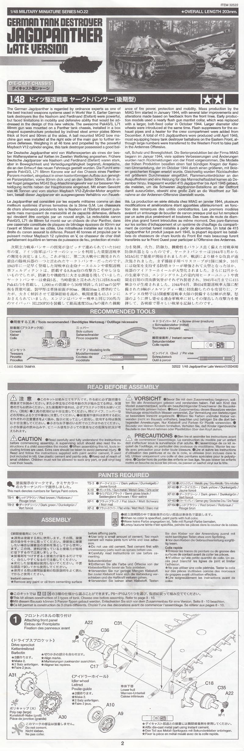 パンサーって書いてるけど、普通はパンターっていうんだけどなぁ。タミヤだけかなぁ。これも48モデル。ダイキャストシャーシを持つタイプなので瞬間接着剤が必要です。ダイソーので十分です。くっつくのも早く少しの間なら貼り直しもできる。しかし手に着くと大変です。そこは気を付けますね。