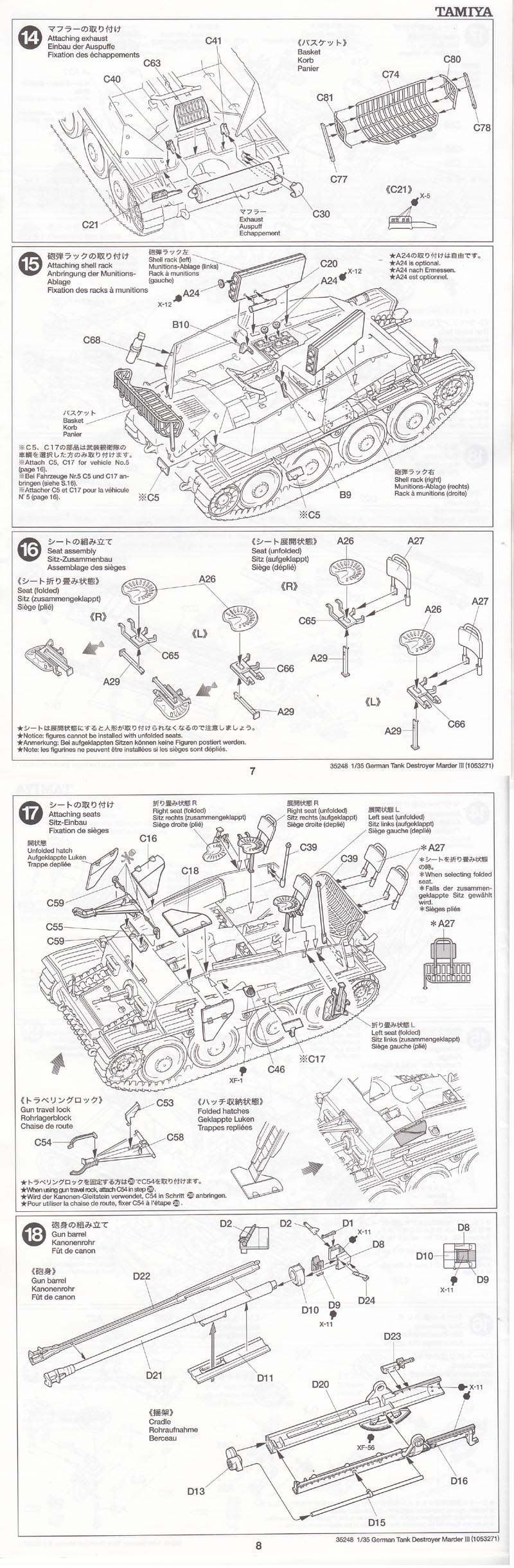 14にある、バスケットというのがいいですね。物を載せるんですね。16でシートは展開状態にすると兵士が取り付けられないと書いてあります。親切ですね。っていうか、折り畳んだ状態で作ればいいのに。って思いました。でも展開式もいいんだよね。座る兵士もつけてくれたらいいのに。