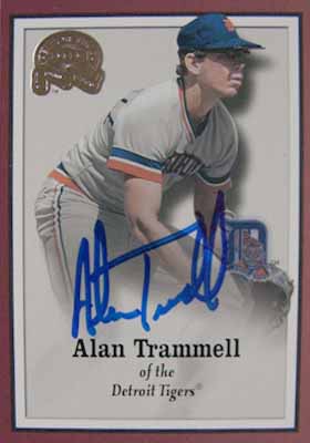 | アラン・トラメル AlanTrammell 今日からは私の1番得意としているメジャーリーグの選手のサインカードの紹介になります。まずはアラン・トラメル。1977年から1996年までデトロイト・タイガース一筋のセカンド。1984年のワールドシリーズのMVP。とってもまじめな方で練習熱心だったそうです。現在は何故かサンディエゴ・パドレスのコーチをしていらっしゃいます。いつかはタイガースの監督さんになるんでしょうね。 |