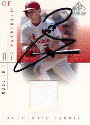ボストンレッドソックスにきて大活躍のドリューさん。以前はセントルイスにいましたね。このカードはジャージーカード。しかもうまくインクが出なかったのか2度書きしてくれてます。真面目な選手ですね。